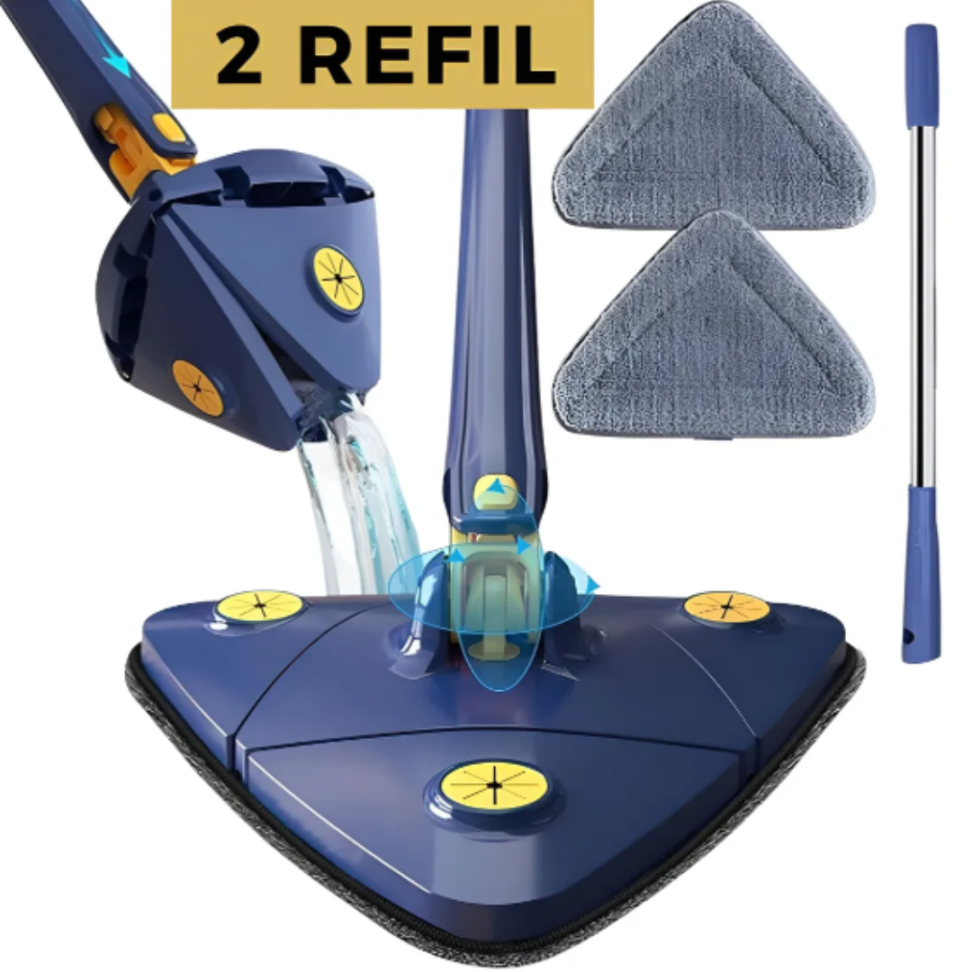 O refil de microfibra é lavável e substituível, adequado para pisos frios, sintéticos, madeira e superfícies lisas.